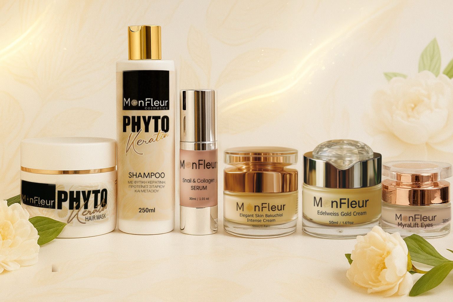 Η Mon Fleur Cosmetics δημιουργεί μοναδικά προϊόντα περιποίησης, βασισμένα στην αγνότητα της φύσης και την επιστημονική καινοτομία. Κάθε φόρμουλα συνδυάζει φυσικά, δραστικά συστατικά υψηλής ποιότητας με την τελευταία λέξη της κοσμητολογίας, για να προσφέρει αποτελέσματα που νιώθεις και βλέπεις.